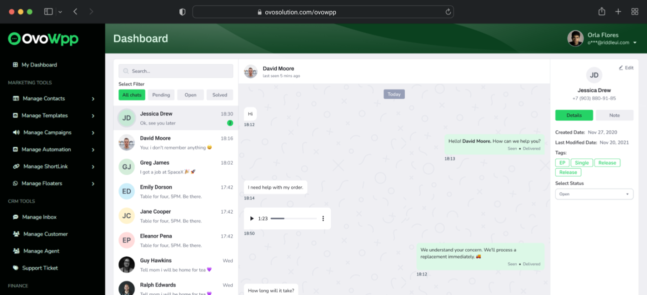 Convert contacts into loyal customers with detailed profiles, history, and interaction tracking. Use filters and custom fields to personalize your communication strategy.